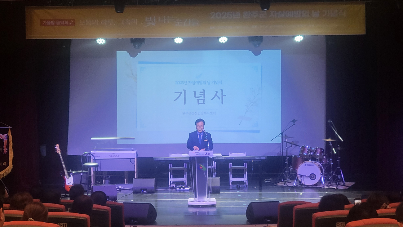 2025년 완주군 자살예방의 날 기념식 페이지 정보 작성자 관리자 댓글 0건 조회 71회 작성일 25-12-26 15:41 목록 본문 2025년 완주군 자살예방의 날 기념식일 시 : 2025.09.17장 소 : 완주군 향토예술문화회관