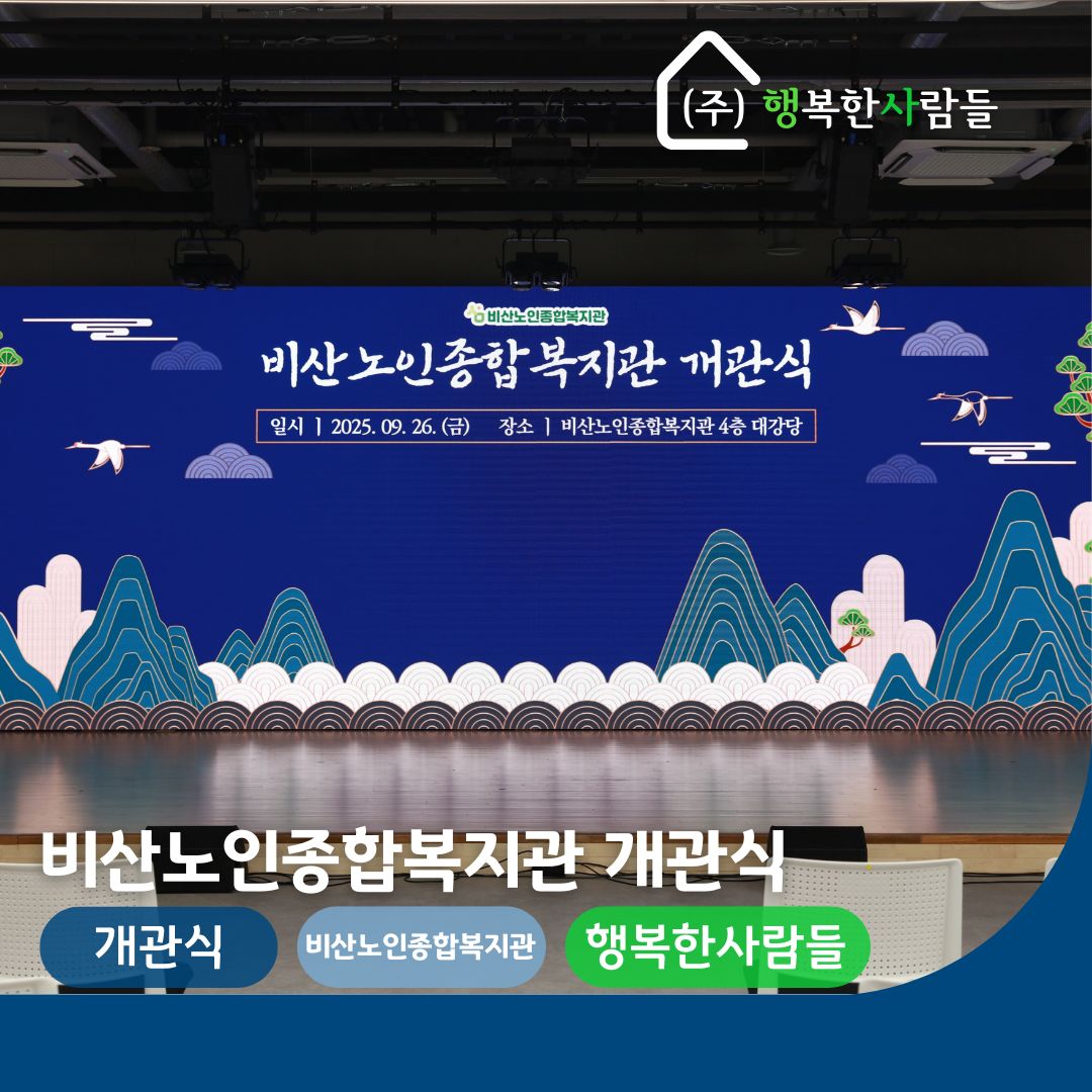 2025 비산노인종합복지관 개관식 페이지 정보 작성자 관리자 댓글 0건 조회 72회 작성일 25-12-26 17:48 목록 본문 비산노인종합복지관 개관식일 시 : 2025.09.26장 소 : 비산노인종합복지관